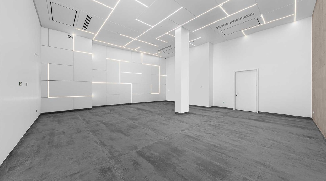 ✅ سالن بزرگ با ارتفاع سقف بالا و پنجرههای وسیع